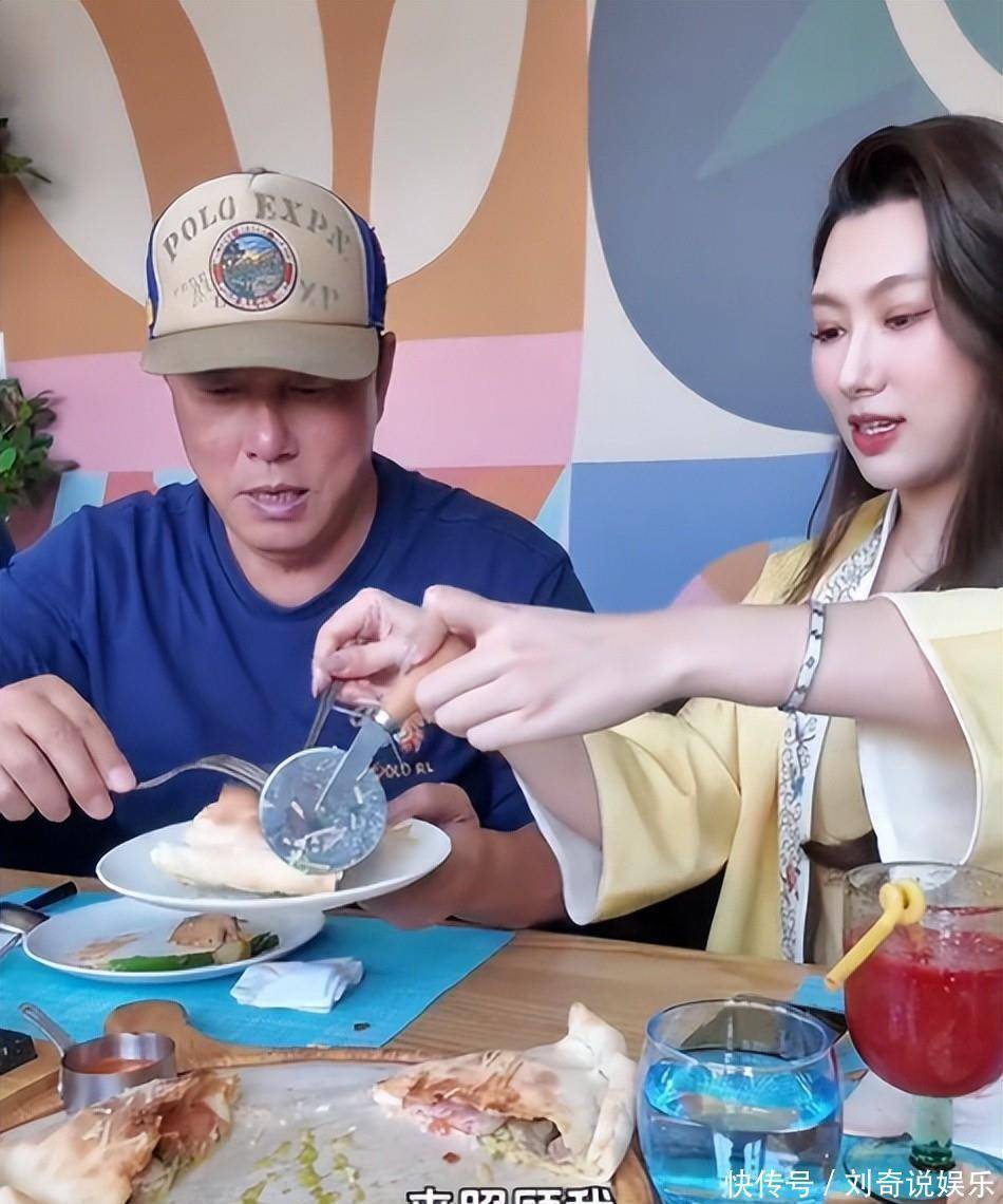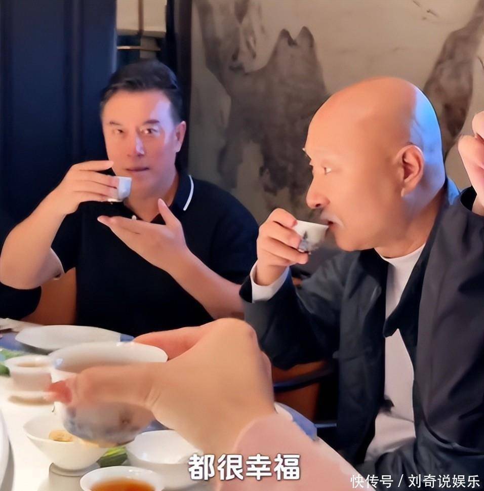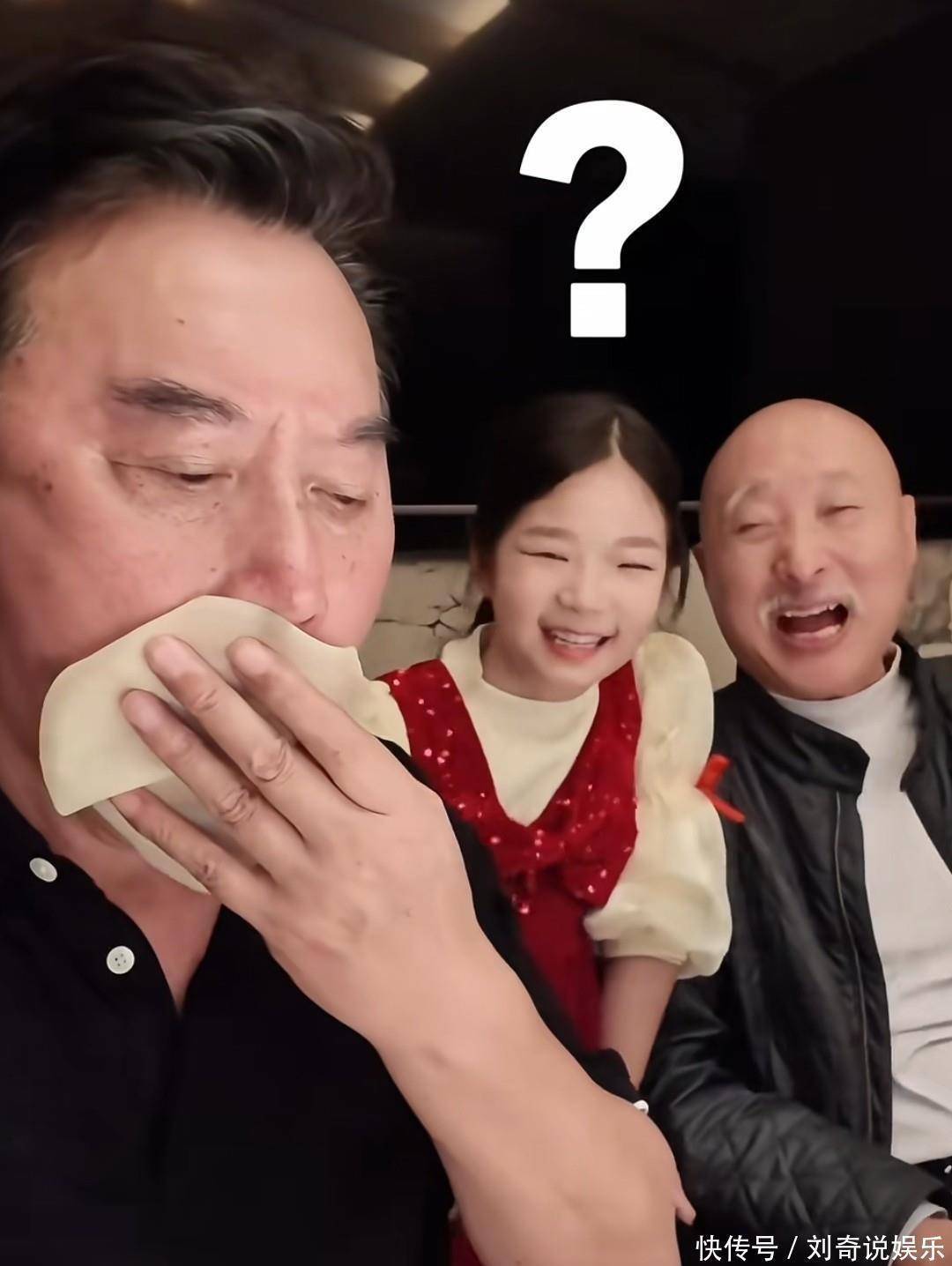 张山平时低调得很,这次露脸,身上只有一件黑色短袖,头发花白,脸上布满斑点,但一点都不遮掩,反倒在吃烤鸭的时候玩起了花样——有人用葱丝卷饼,可他偏偏把饼皮直接塞到嘴里,紧接着咬一口鸭肉,逗得陈佩斯直呼“山东的吃法”,全家都笑成一片。