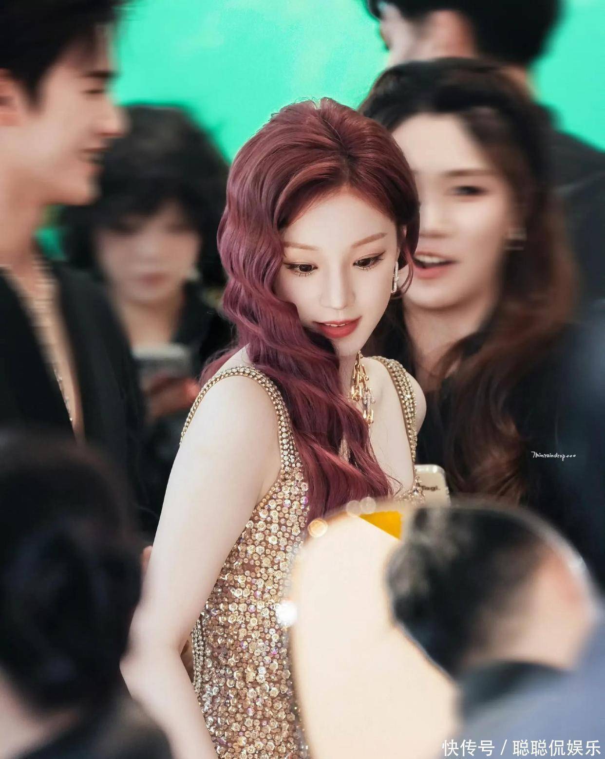 幸好这没有影响到她的魅力,身穿红发金色礼服在人海中格外夺目,光彩照人。